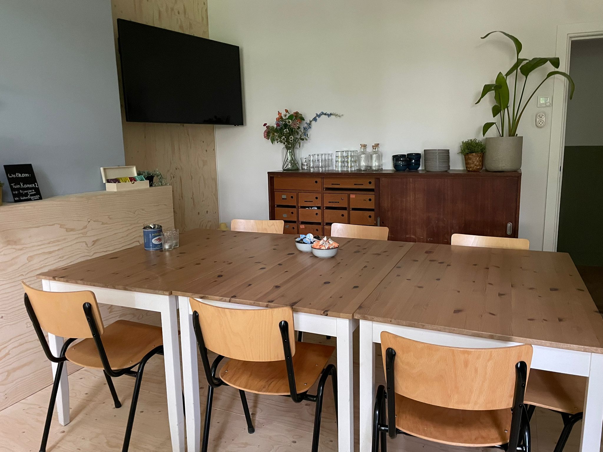 In Tuinkamer 2 voel je je direct thuis in de huiselijke sfeer. Met uitzicht op groen en om je heen voornamelijk natuurlijke materialen kom je tot rust en krijgen de ideeën ruimte om tot ontwikkeling te komen. Deze ruimte is geschakeld aan Tuinkamer 1, uiteraard kunnen ook beide ruimtes gehuurd worden. Een fijn plek om te vergaderen, te brainstormen of de nieuwe plannen aan je team te presenteren.