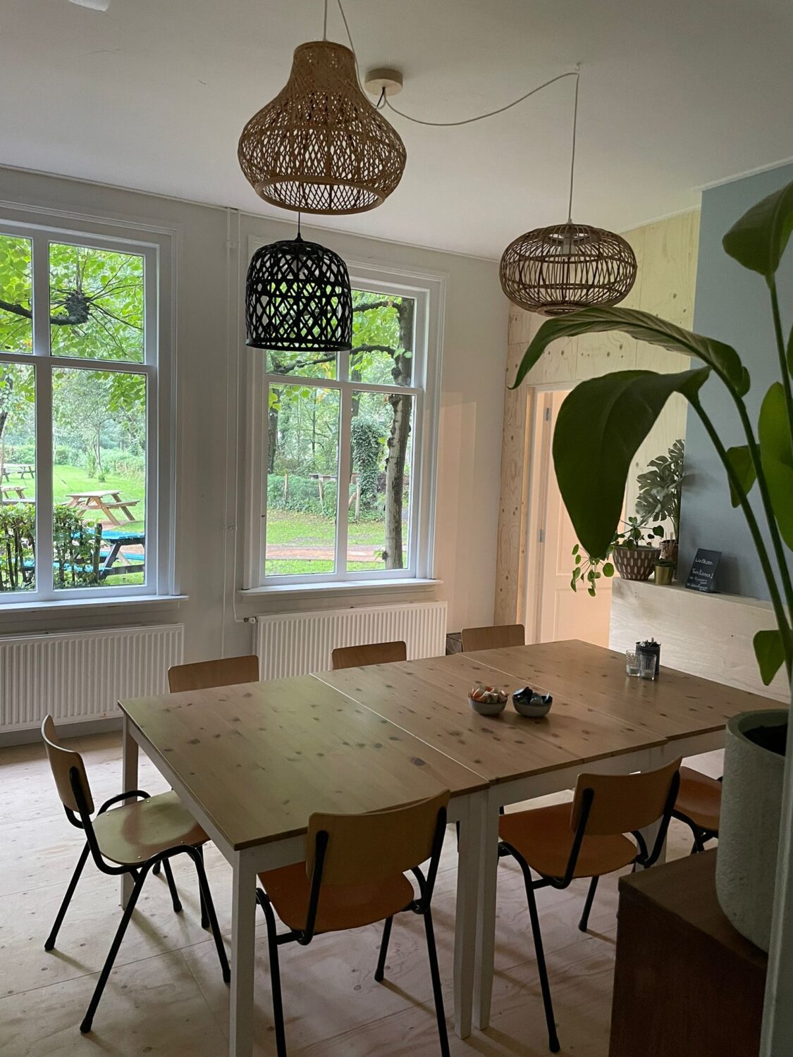 Een lichte vergaderplek omringd door groen